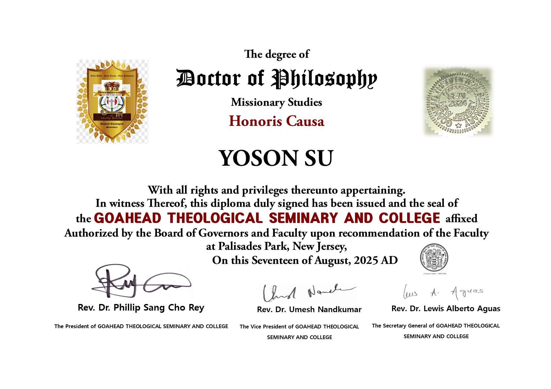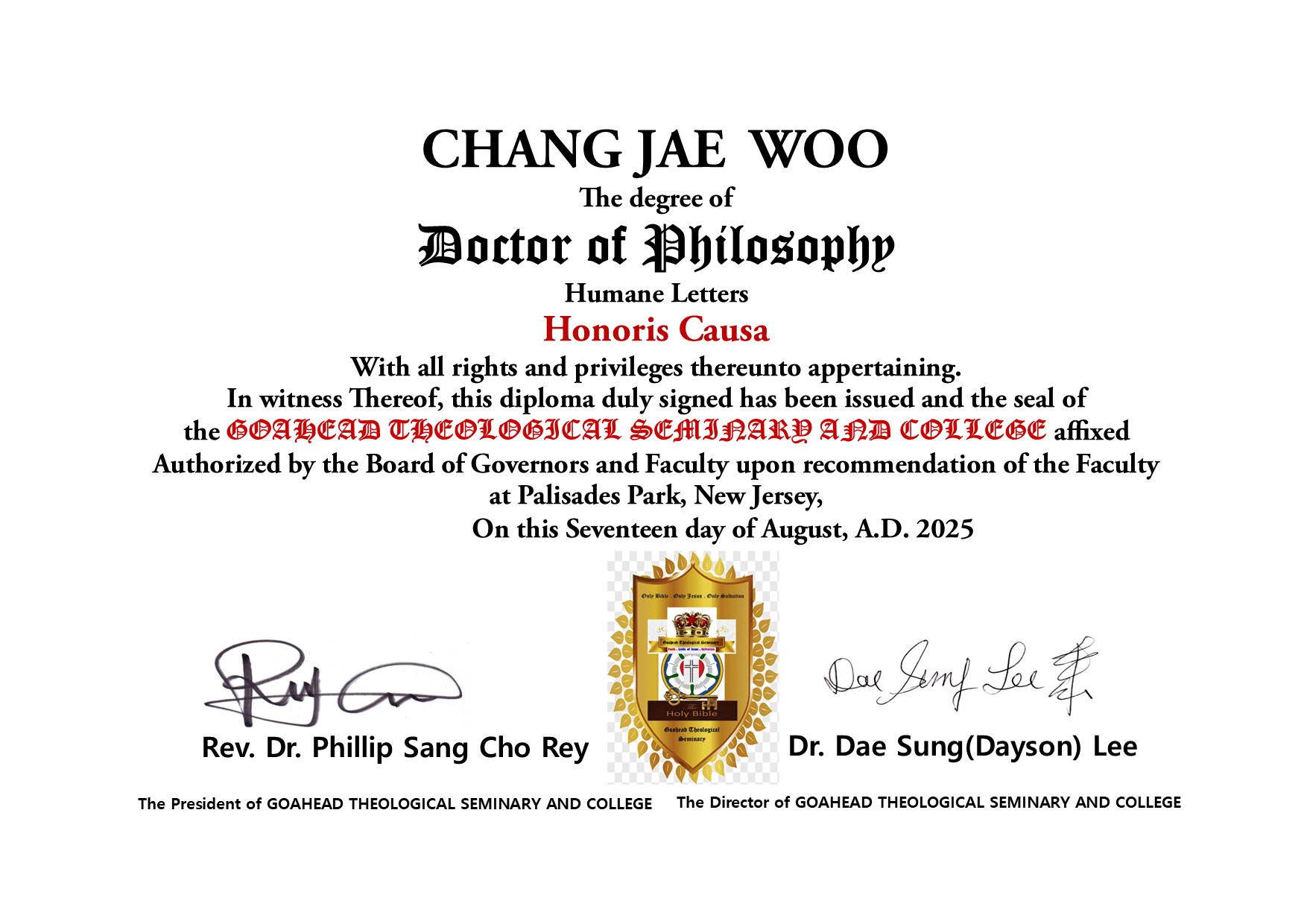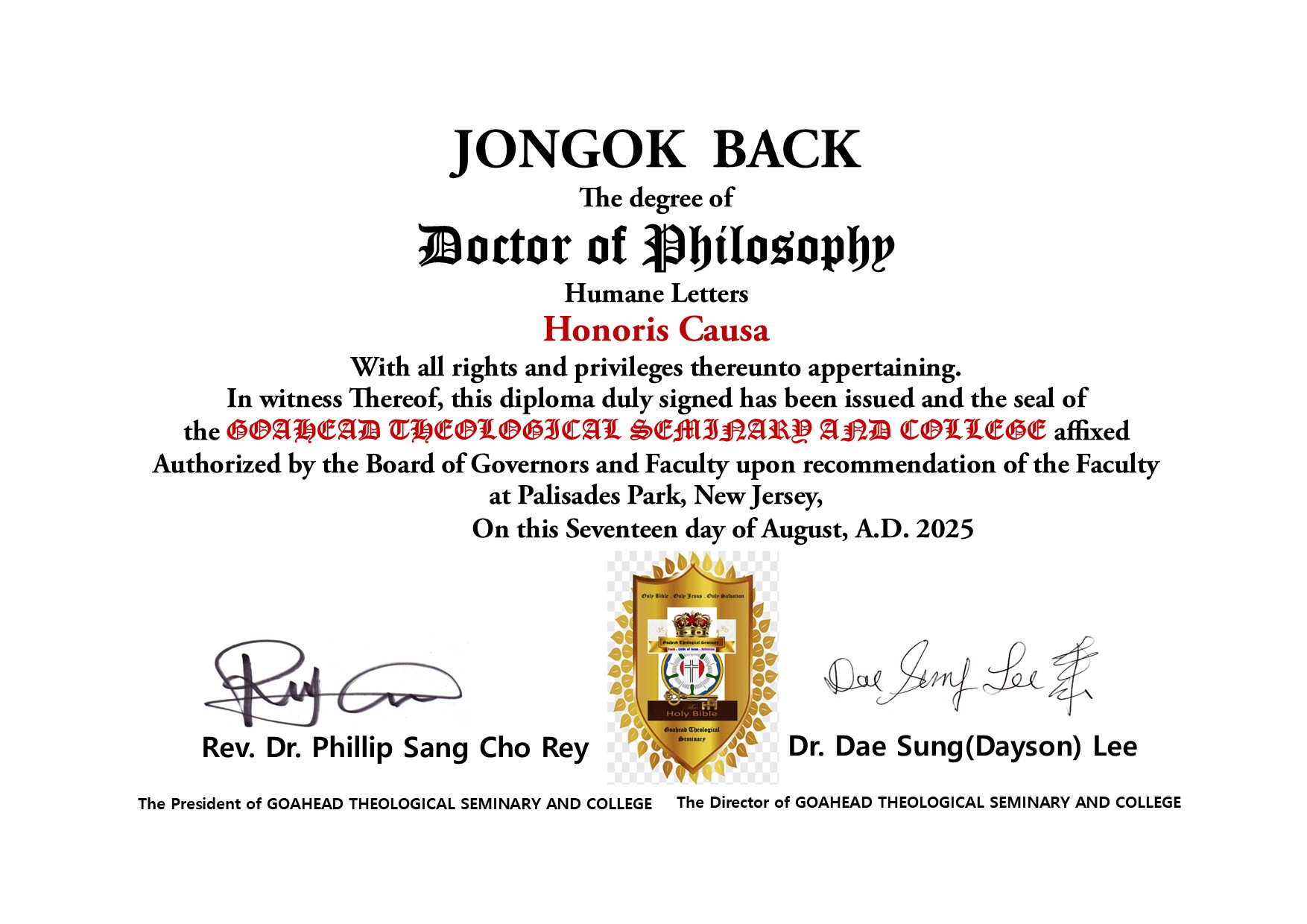 Conferment Ceremony in Han Nam University on November 29, 2025 Dr.Soung Ok Park : Doctor of Theology for Honoris Causa Dr.Hyeon Jin Lee : Doctor of Literature for Honoris Causa Dr.Young Jin Kim : Doctor of Philasophy for Honoris Causa Dr.Tae Hun Lee : Doctor of Humanities for Honoris Causa